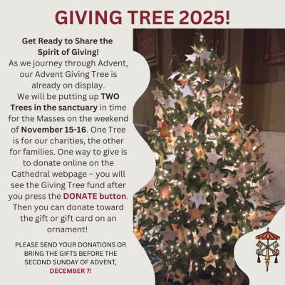 Christmas at the Cathedral Basilica is a very special time of the year for our parishioners and our visitors. Please extend an invitation to your families, friends and neighbors to join us at the Cathedral Basilica for the Holy Days of Christmas.