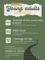 • La Santa Misa es celebrada en español los domingos a las 12:30 PM en la capilla de la Catedral.