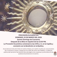 The Way of the Cross in Spanish, will also take place each Sunday of Lent in the Basilica following the 12:30 PM Mass.