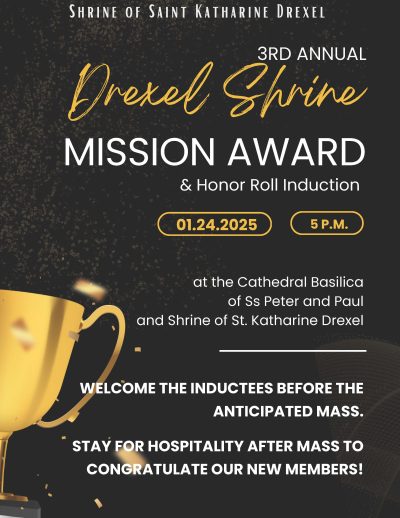 Join Us for the Drexel Mission Award Ceremony! We are excited to announce the Drexel Mission Award, honoring individuals who exemplify the spirit of Saint Katharine Drexel through their dedication to service and community.