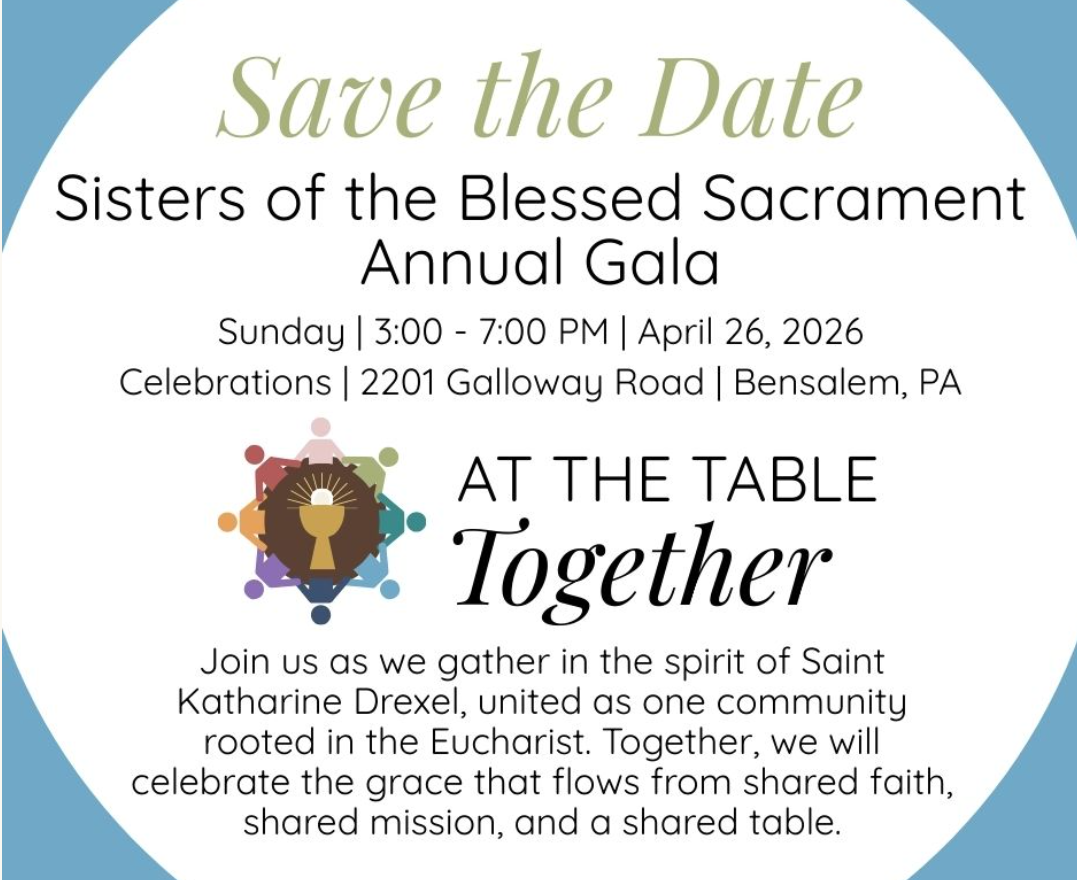 Hosted by the Sisters of the Blessed Sacrament, Sunday, April 26th