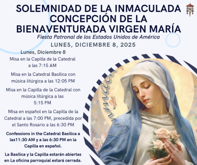 Only the Cathedral Chapel is open for the 9:00 AM Mass on Federal Holidays.