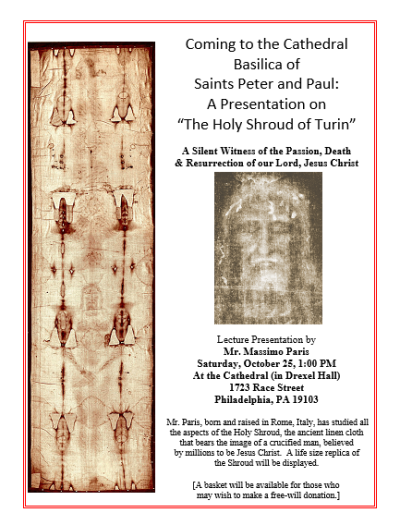 Mr. Paris, born and raised in Rome, Italy, has studied all the aspects of the Holy Shroud, the ancient linen cloth that bears the image of a crucified man, believed by millions to be Jesus Christ. A life size replica of the Shroud will be displayed.